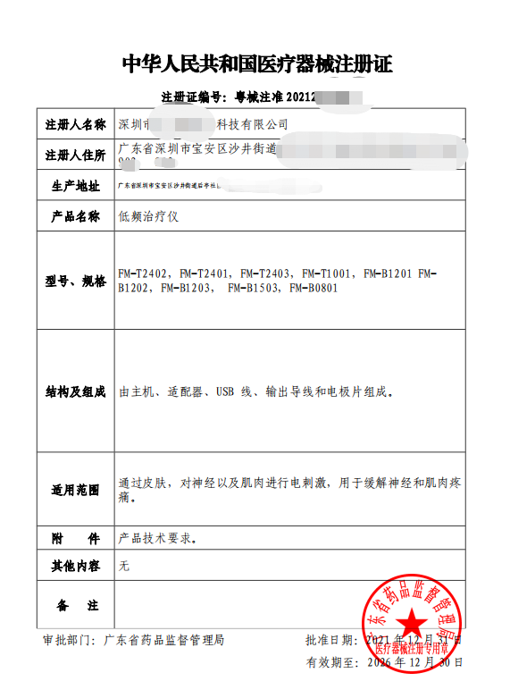 低頻治療儀注冊(cè)證